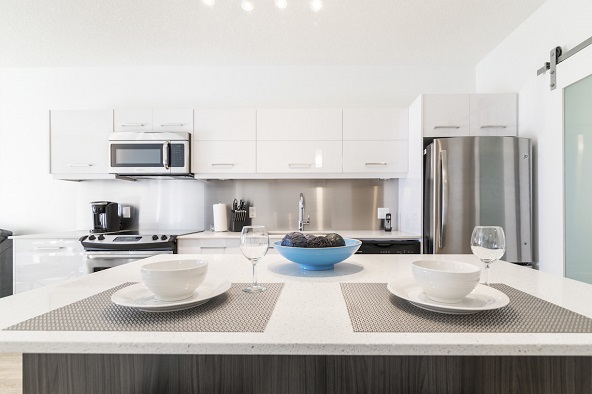 • Fully equipped kitchens with appliances, cookware, and dining essentials